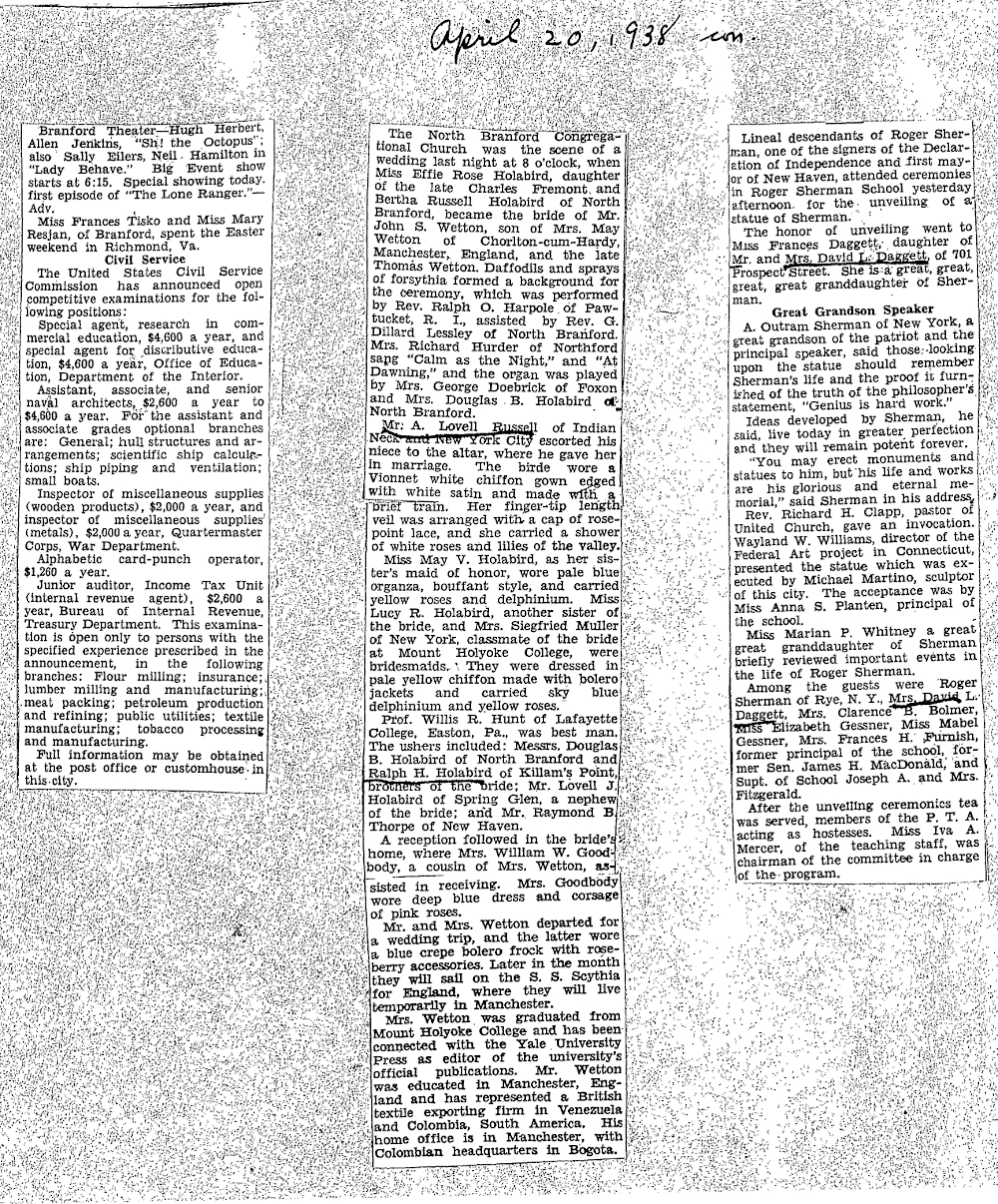 -Excerpt courtesy of Newspapers.com, The Morning Journal-Courier, “Roger Sherman Tablet,” June 7, 1904